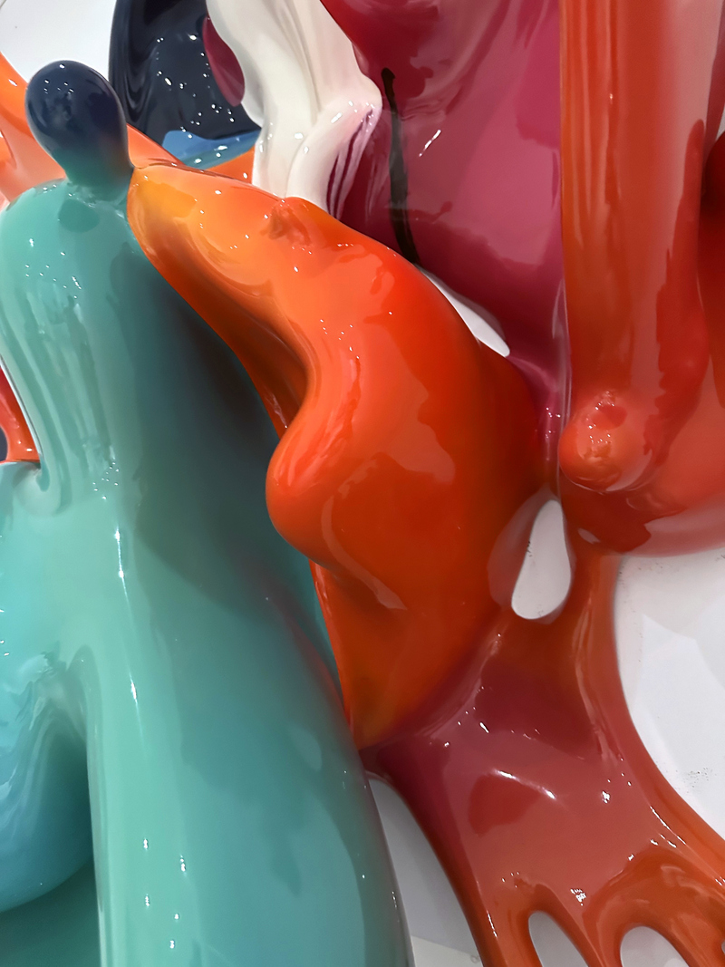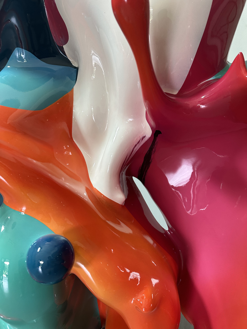 Each drip and extension feels organic, yet precisely composed, balancing spontaneity and control. The vibrant surfaces shift with light and perspective, activating the surrounding space.