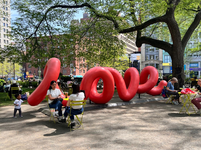 Playful and interactive, the sculpture challenges visitors to explore an abstract squiggly line, that morphs into ‘Love’ when viewed from the right perspective.