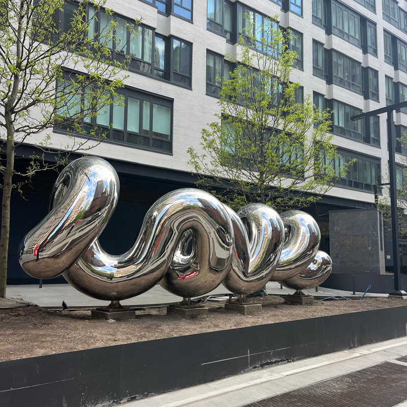 A permanent polished stainless steel sculpture installed in 25 Water Street.